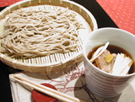 3. そばは沸騰した湯で表示どおりゆでて、ザルに上げて冷水で洗い、水気を切って器に盛り付ける。