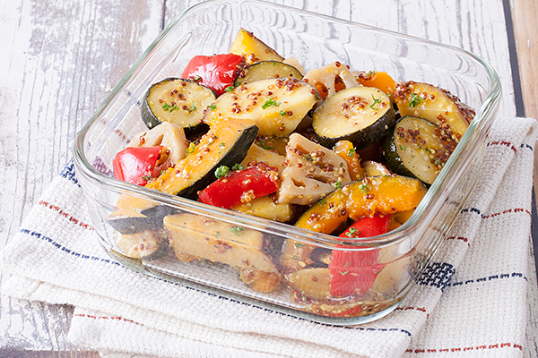 3. 耐熱皿に2)を広げ、220℃のオーブンで13〜18分焼く(途中で野菜を混ぜる)。