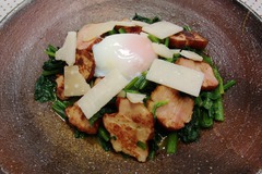 ベーコン(かたまり) ほうれん草 卵 バター 塩 こしょう パルミジャーノレッジャーノ サラダ油