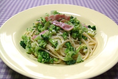 ブロッコリー ベーコン スパゲッティ バター 生クリーム 牛乳 塩 こしょう